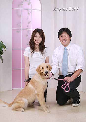 | 兵庫県姫路市/プリンちゃん(ゴールデン・レトリバー♀1才) コメント/姫路市からお越し頂いたK様ファミリーと愛犬のプリンちゃんです。ご夫婦の結婚1周年の記念に同じく満1才のプリンちゃんと一緒にご来店いただきました。 |